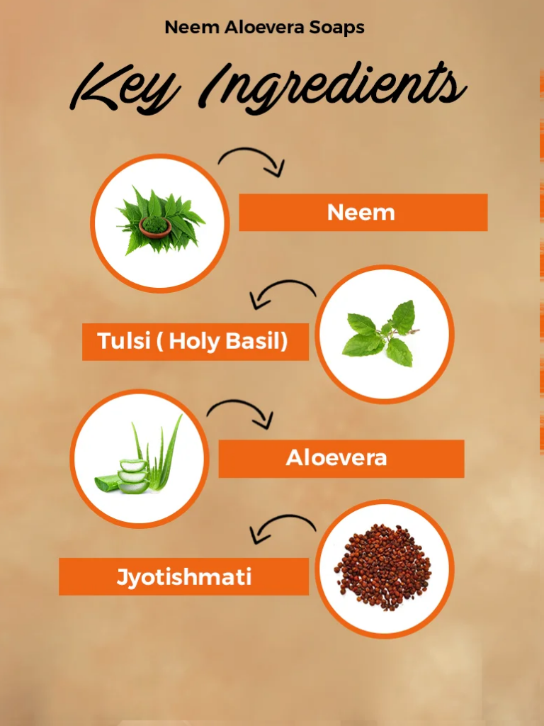 • Shatpatrika, Neem,Tulsi, Aloevera, Kumkumadi Tailam, Usira, Trapusha, Jyotishmati, Base Glycerin Soap.