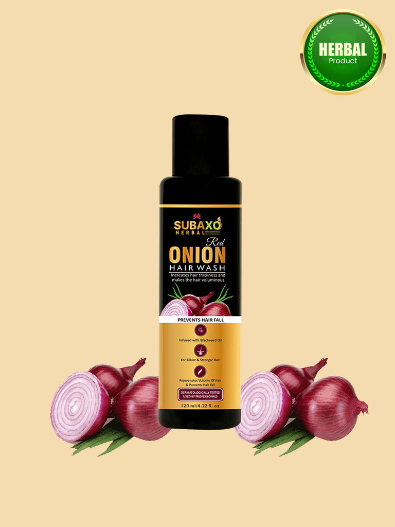 Subaxo Red Onion Herbal Hair Wash | Conrtols Hair Fall |Makes Hair Silkier & Stronger(120ml)