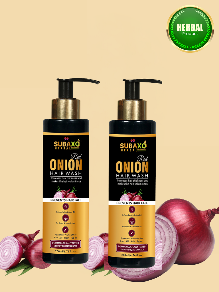 Subaxo Red Onion Herbal Hair Wash | Herbal Onion Shampoo |Makes Hair Silkier & Stronger(200ml x 2, Pack of 2)